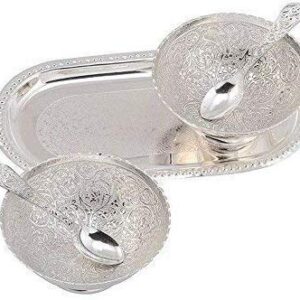 German Silver Bowl with Royal Velvet Box -5 Pieces Set Gift Item (2 Bowl 2 Spoon 1 Tray)