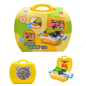 - Endless Fun. This Kitchen Pretend-n-Play Toy Set Serves Perfectly as Educational Toys Encouraging Imagination and Creative Thinking. Children Make Stories by Playing with Kitchen Ware, Washing the Vegetables and Cooking Foods.