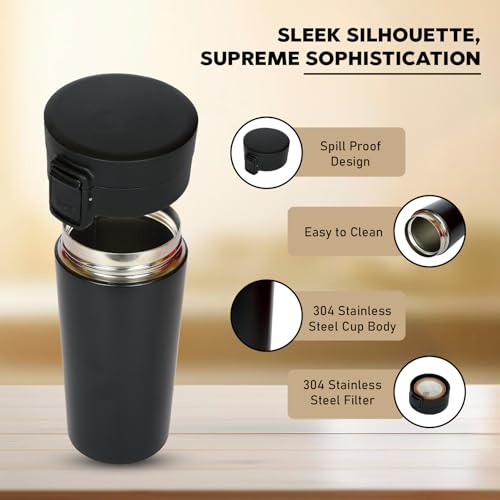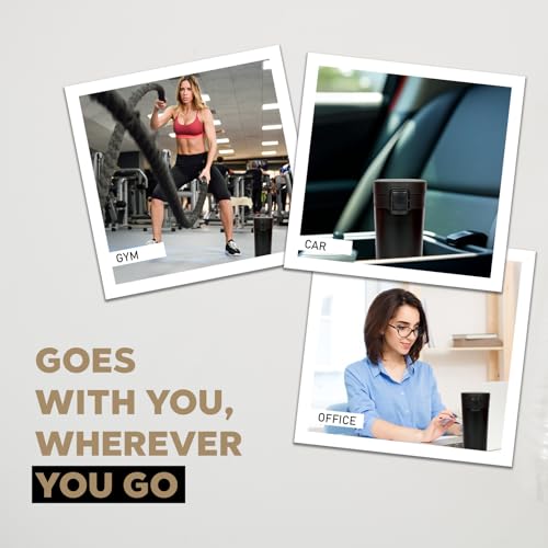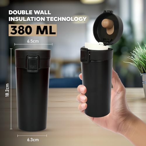 Black Tumbler 380ml – Insulated Stainless Steel Coffee Travel Mug with Leak-Proof Lid | Double-Wall Vacuum Flask for Hot & Cold Beverages | Durable & Portable for Office & Travel