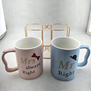 • NOVELTY HIS AND HERS COFFEE MUGS – Mr and Mrs coffee mug set of 2, cork bottom ceramic mugs set 9.5 oz (320 ml) with unique and high quality printing of Mr for the man and Mrs for the women.