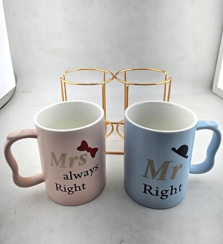 Couple Mug Set with Stand – Mr and Mrs Ceramic Coffee Mugs (2 Pack, 9.5 Oz, White) – Novelty Valentine Gift, Wedding