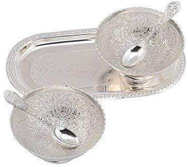 German Silver Bowl with Royal Velvet Box -5 Pieces Set Gift Item (2 Bowl 2 Spoon 1 Tray)