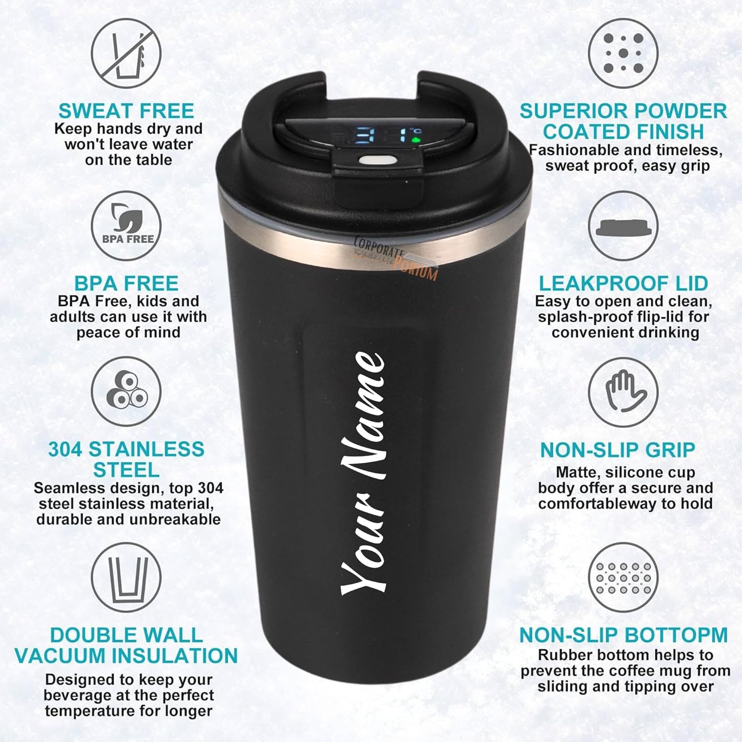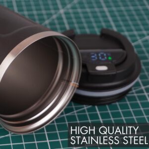 - Advanced Temperature Display for Precision: Keep your beverage at the perfect temperature with confidence. This large double-wall vacuum mug features an advanced temperature display that provides real-time monitoring of your drink’s temperature. Whether you prefer your coffee piping hot or just the right level of warmth, stay informed and in control for an optimal drinking experience. With precision temperature control, every sip is just as satisfying as the first.