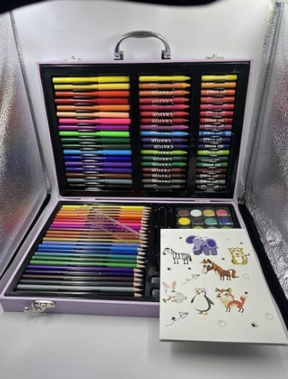 Trending PRO 128-Piece Colouring Kit– Premium Drawing Set with Crayons, Markers, Pencils (Set of 1, Multicolor)